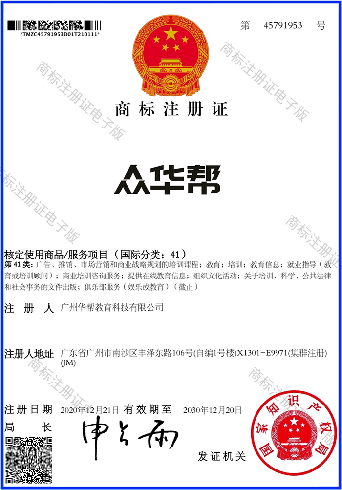 广州华帮教育科技有限公司,以下简称(华帮教育),是经广州市市场监督管理局备案合规的服务机构。