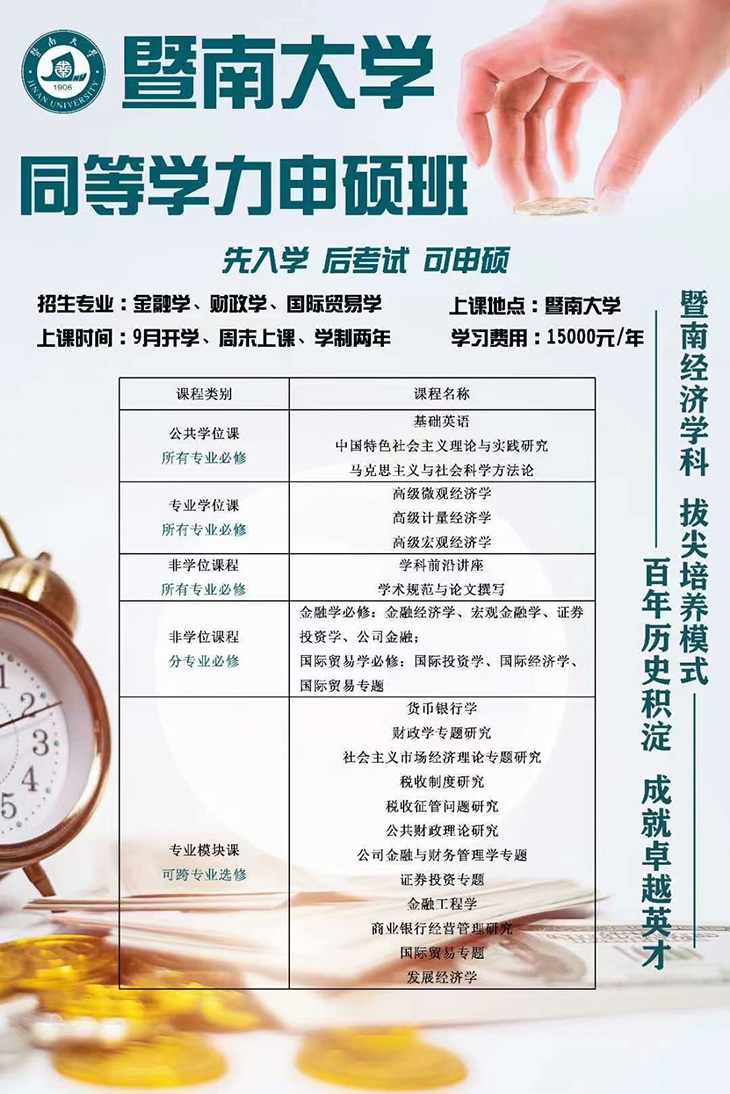 暨南大学同等学力升硕班名额 免联考 广州在职研究生报读